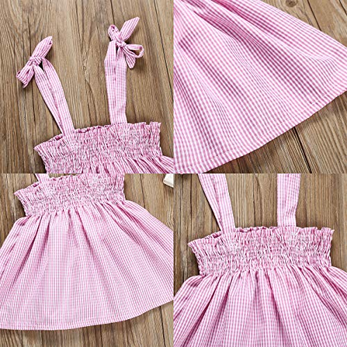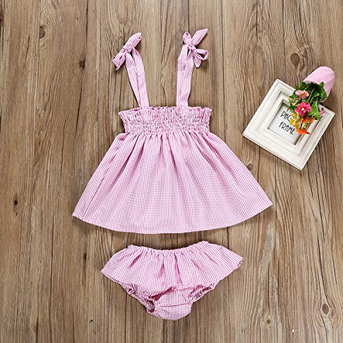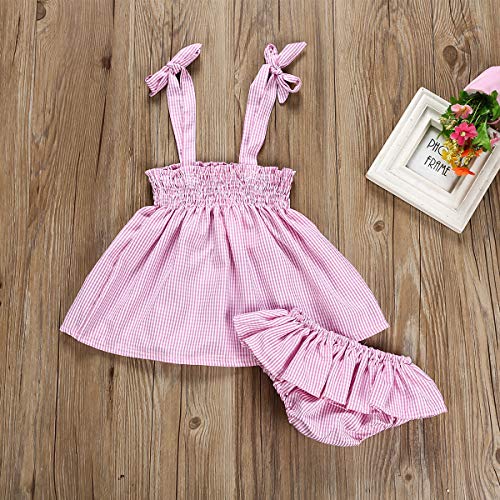 2 stks Baby Pasgeboren Meisje Roze Plaid Strap Dress+ Briefs Casual Outfit kleding Set